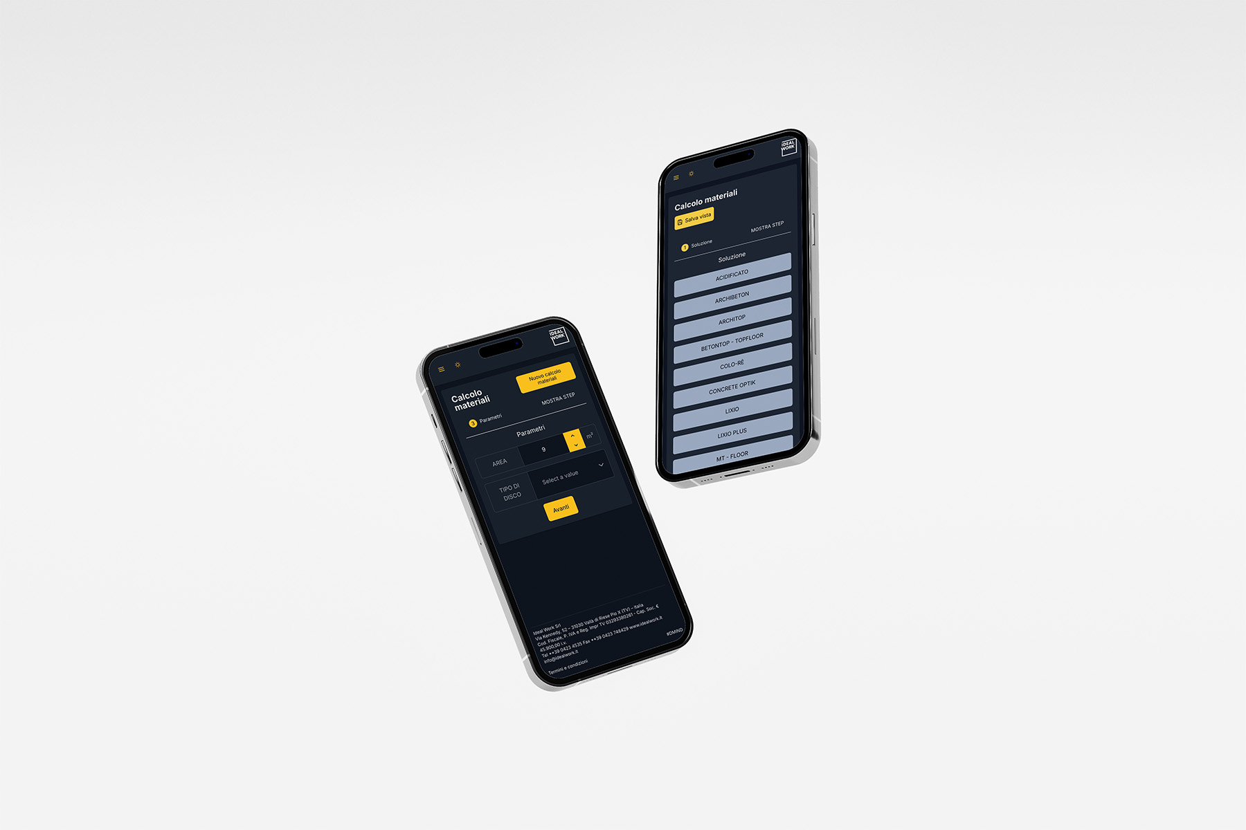 Insérez la surface, l’épaisseur, la couleur et la solution : Ideal Work 24/7 vous fournira une liste détaillée des matériaux et des quantités nécessaires.